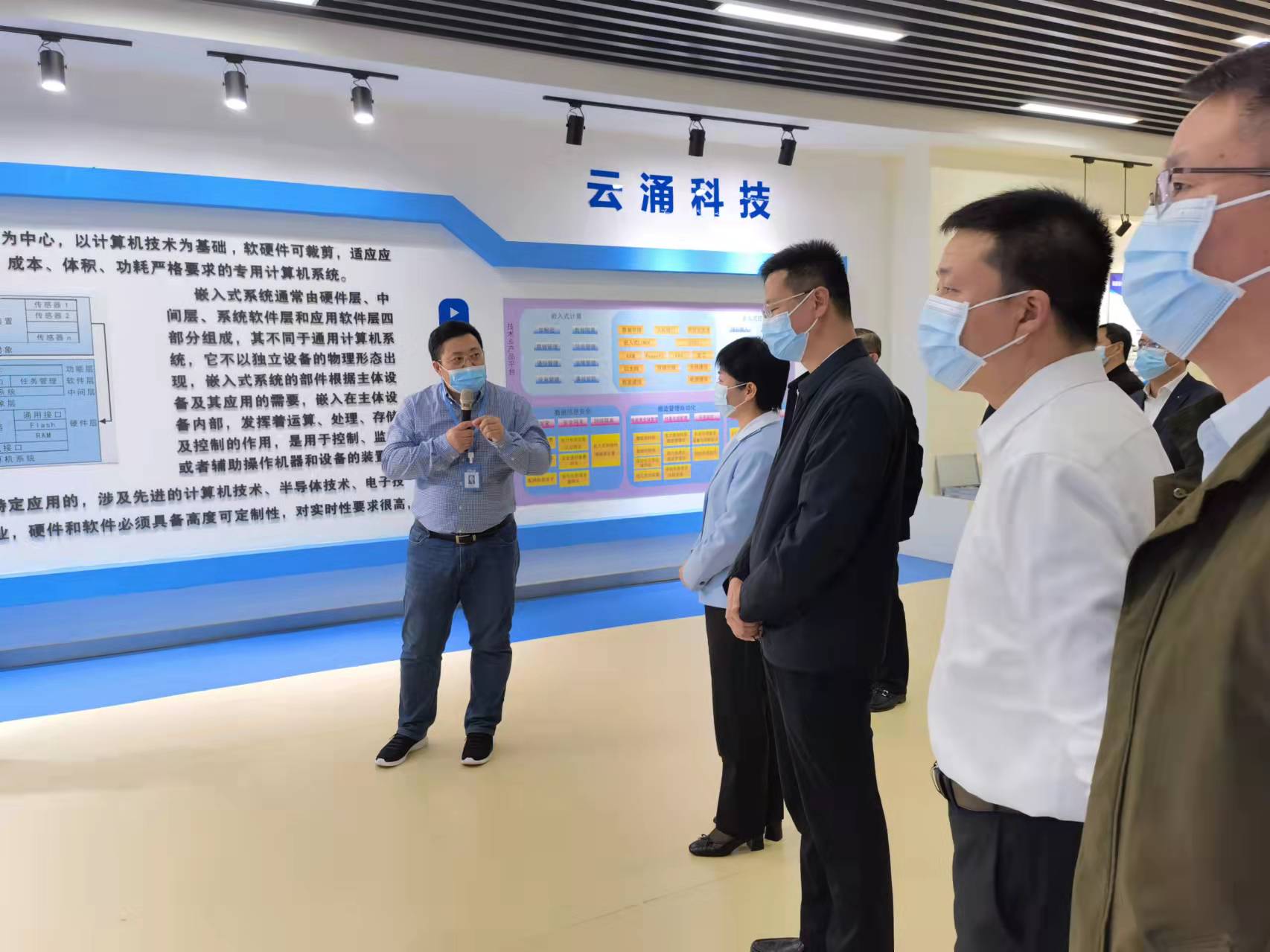在本次考察过程中,万市长一行在公司领导的陪同下,首先参观了公司展厅,听取了姜总介绍公司通过科技创新从孵化器成长为上市公司的历程,以及未来立足科技创新,持续发展的战略规划。