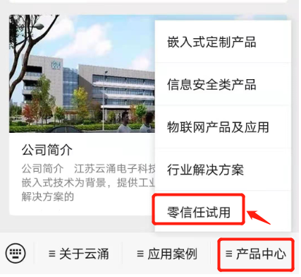 首先关注澳门新葡京博彩官方微信公众号,然后进入【产品中心】菜单,并点击下拉菜单中的【零信任试用】进入试用页面,点击免费试用根据提示操作即可。