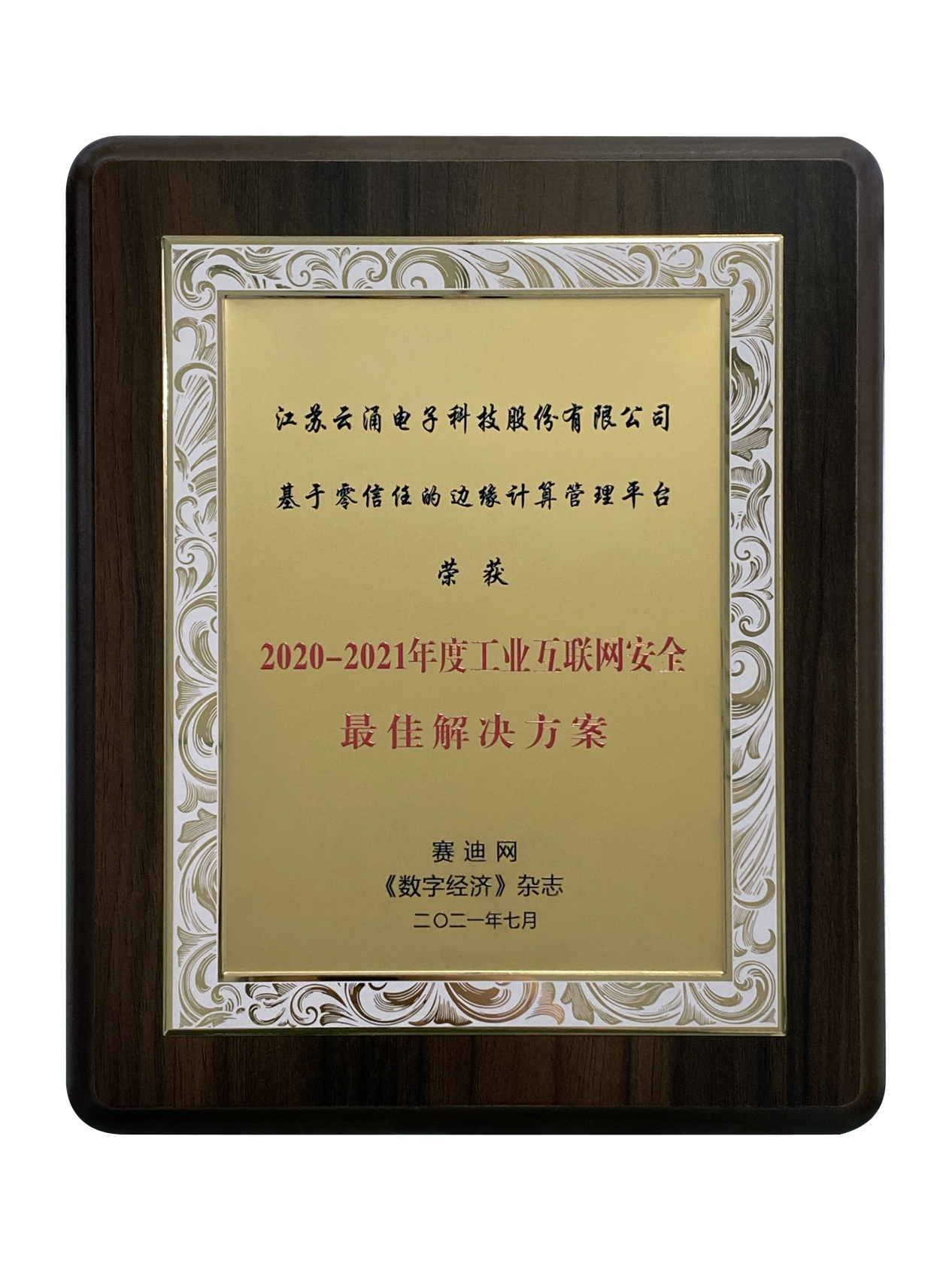 澳门新葡京博彩基于零信任的边缘计算管理平台荣获“2020-2021年度工业互联网安全解决方案”的称誉。