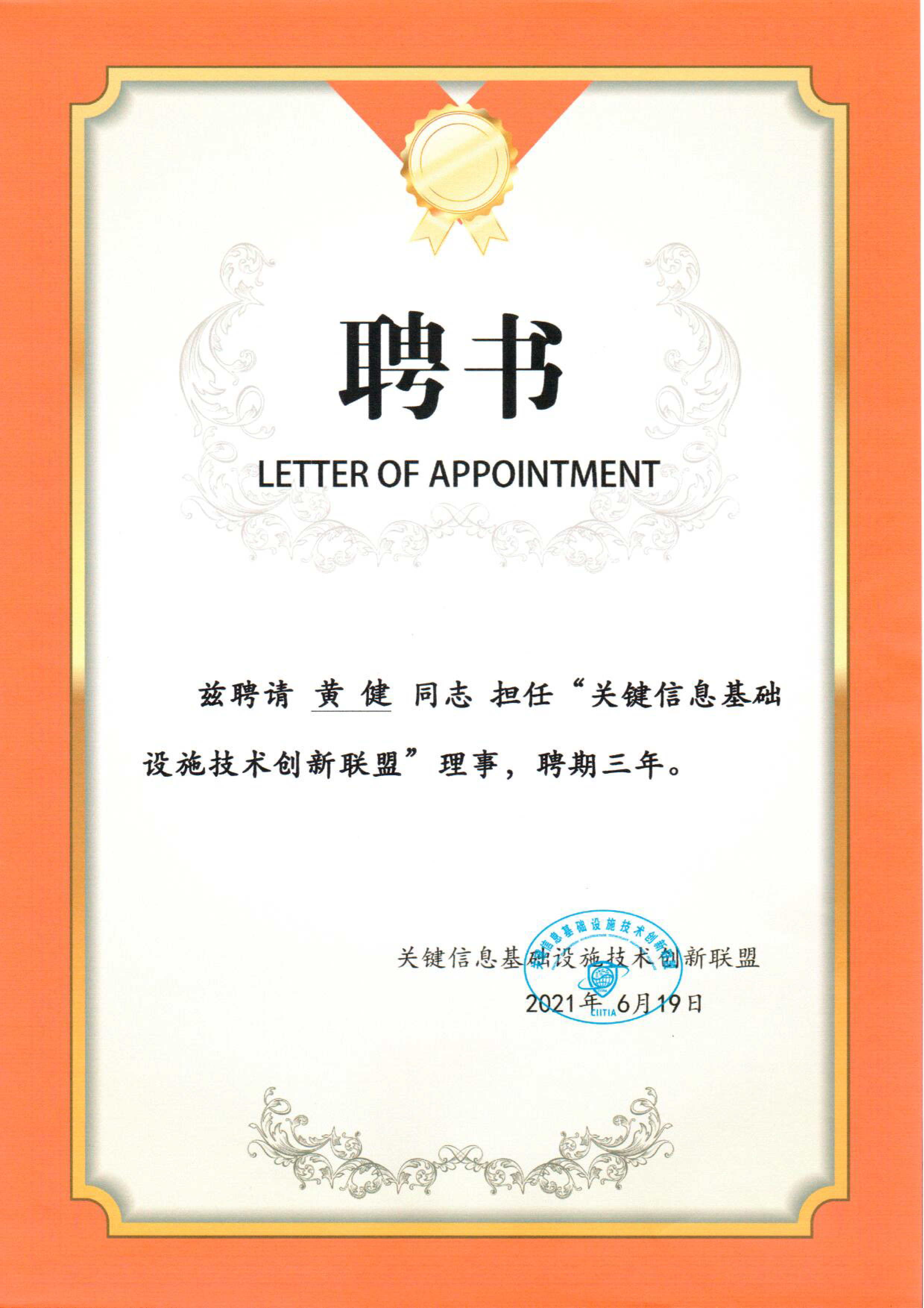 澳门新葡京博彩副总裁黄健先生被聘请担任“关键信息基础设施技术创新联盟”理事。