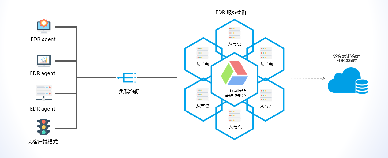 平台通过安全事件监控、漏洞扫描、攻击威胁检测、文件完整性监测、安全配置评估、操作行为审计及异常行为侦测等模块,来实时通知安全团队有关端点上的恶意活动,并适时采取相应的措施来阻止恶意行为。平台通过可视化的展示整个系统的终端安全态势,通过分析其行为来确定用户活动是合法的还是恶意的,从而达到防止外部攻击或内部人员恶意操作的目的。