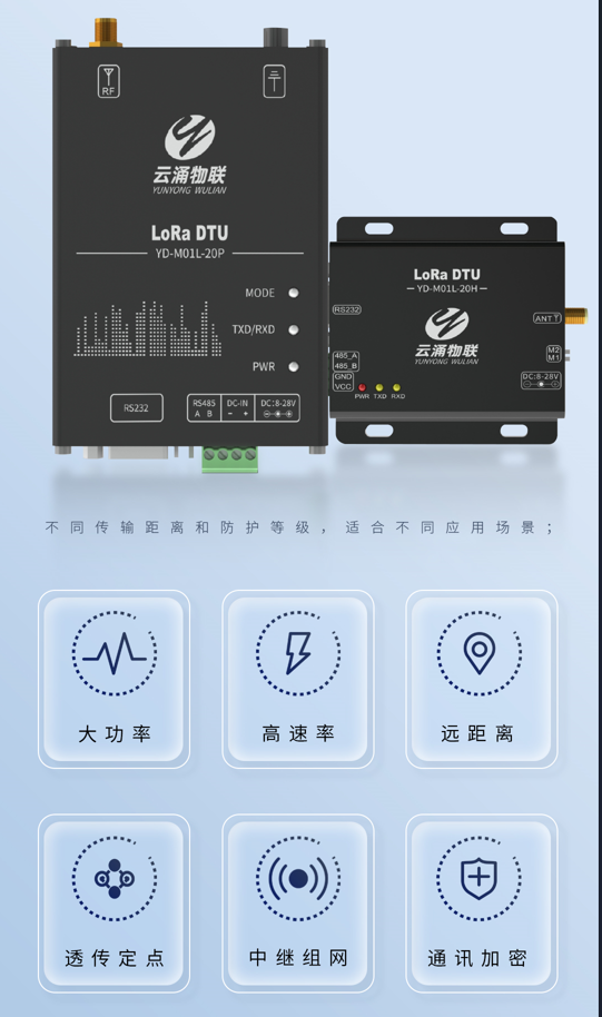 LoRa DTU:带有RS485/232接口(绿端子/标准DB9),分为基础款、增强款和工业款,不同传输距离和防护等级,适合不同新葡京博彩官网;