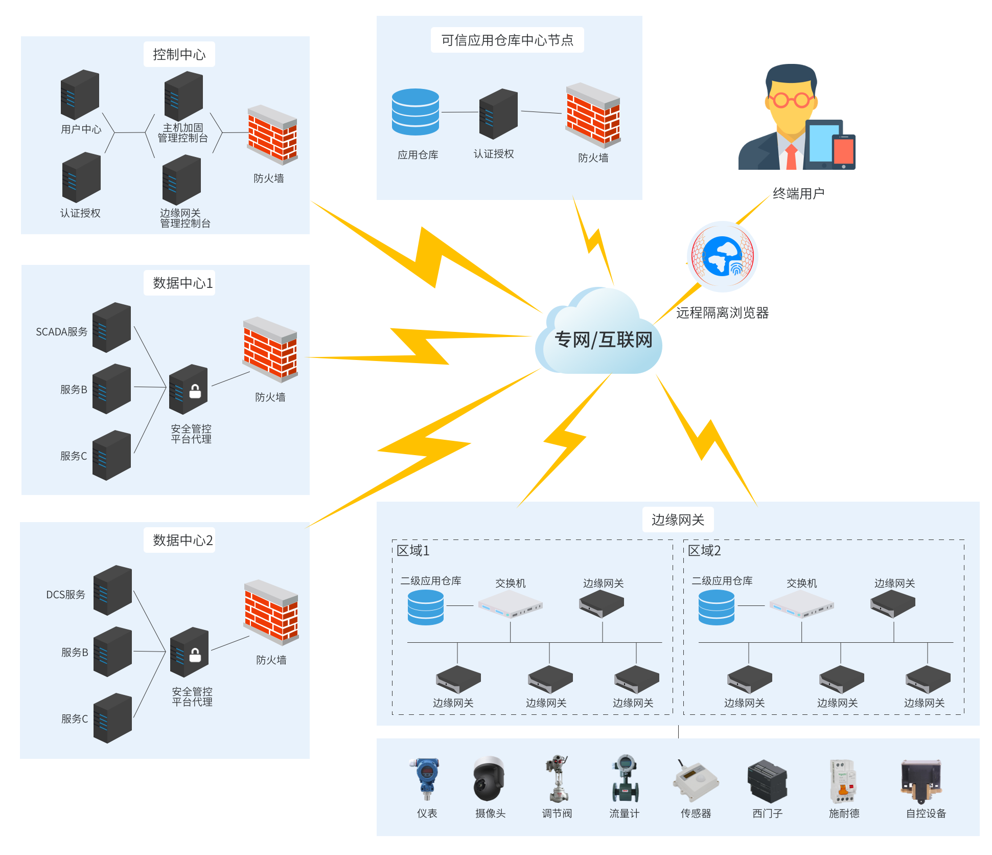 基于零信任的云边端管控系统整体网络拓扑图