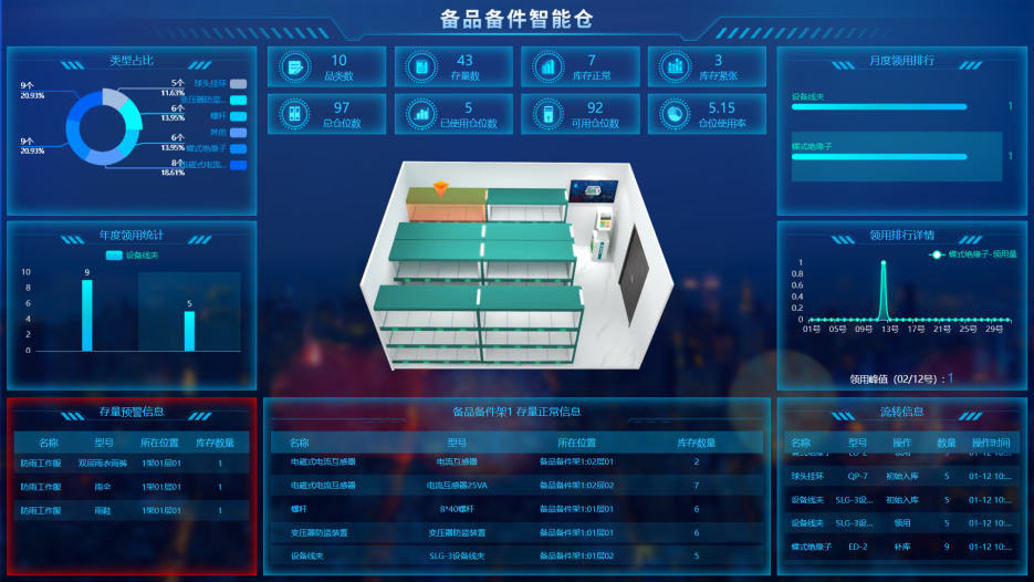 资产可视化是数字供电所“ 六化 ” 建设的核心之一,也是供电所“四库”数字化建设的主要目标。目前供电所“四库”(安全工器具库、备品备件库、计量表库、客户档案库)智能化管理程度较弱,且存在例如手工记录管理、随意领用、流程效率低、缺乏定期检查等问题。
