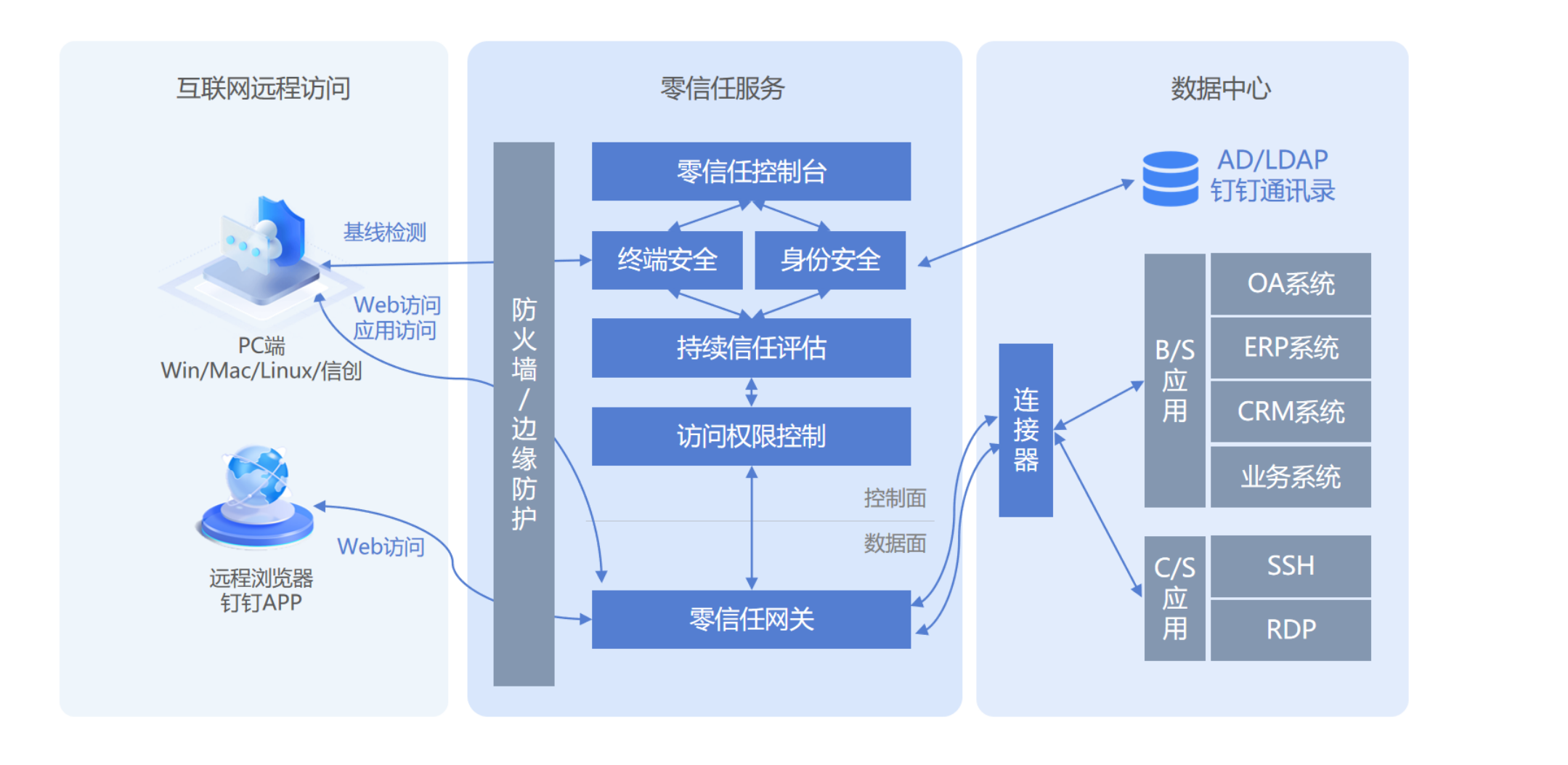 新葡京博彩官网零信任在企业传统的网络基础架构之上,构建以身份为中心的,贯穿企业网络-应用-资源-数据全链路、一体化的安全网络。