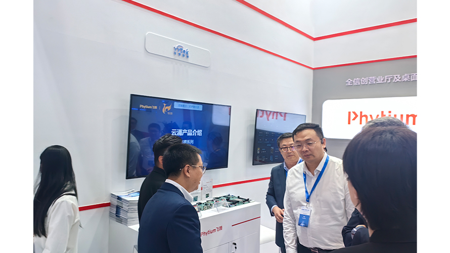 在飞腾解决方案及产品应用展示区,澳门新葡京博彩向大家展示了YY0125服务器主板、YY0149电脑主板,以及基于E2000Q的YY0123云终端,受到与会领导专家的广泛认可和好评。