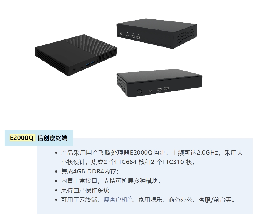 此外,新葡京博彩官网还带来了基于 E2000Q 构建的信创瘦终端和网安硬件平台,以及可信根、加密卡、可信服务器等系列产品,同样在现场备受瞩目。