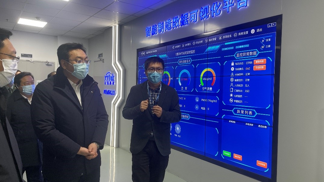 随后,朱书记等一行领导走进我司智能制造车间进行考察,高总重点介绍了公司SMT智能化生产线、“5G+AGV”搬运机器人场景应用等智能车间运行的情况。朱书记对公司的发展以及制造中心的智能化水平给予了充分的肯定,并鼓励公司借力资本市场,继续推进科技创新,实现产品的高价值、高颜值、高效率,促进新葡京博彩官网高质量发展。